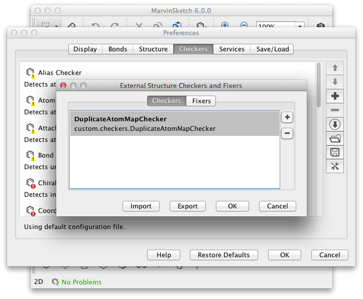 Export all the classes to a JAR file, and use MarvinSketch Preferences to add the Checker and Fixers from it. Imported Checkers and Fixers will be available in all applications using Structure Checker.